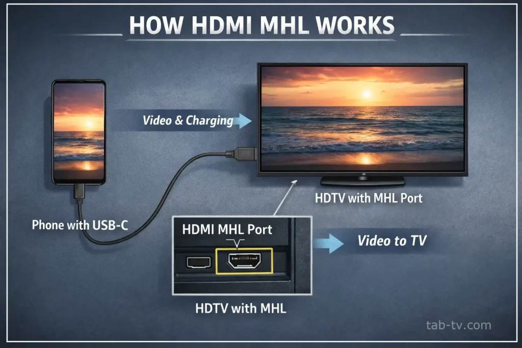 Обозначение MHL относится к устаревшей технологии подключения смартфонов через USB к HDMI — сейчас она используется крайне редко. Такой порт содержит чип, который преобразует сигнал из USB-C в HDMI; раньше он применялся в основном для передачи видео и фото со смартфона на телевизор.