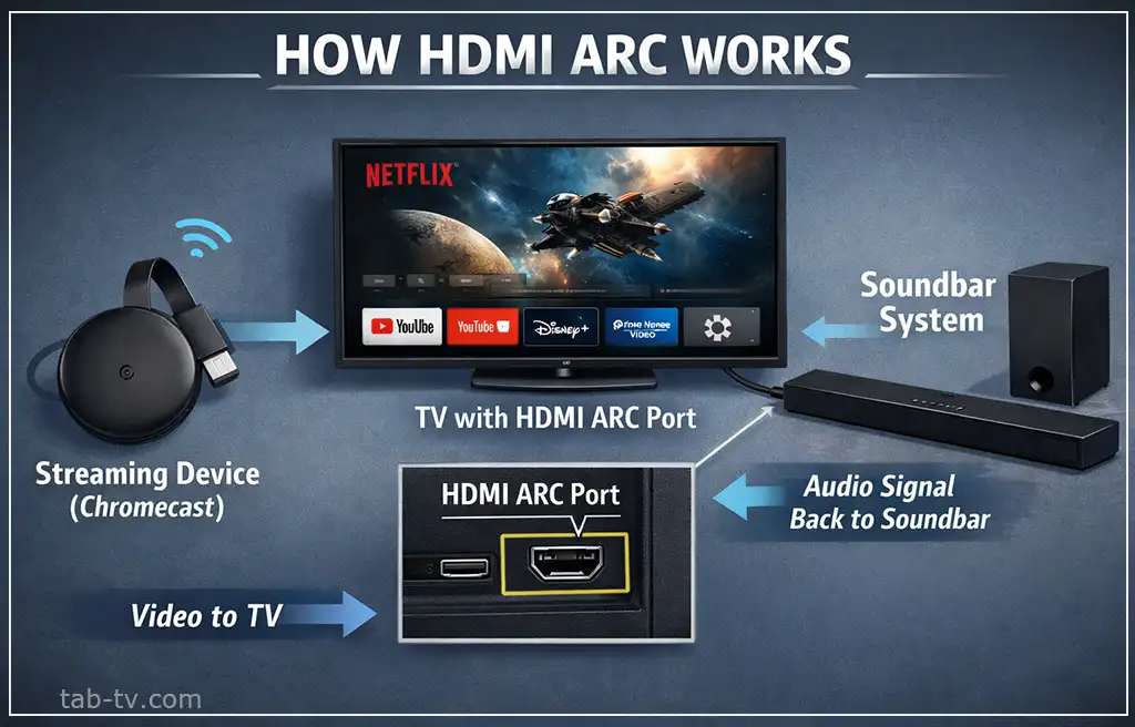HDMI ARC или eARC используется для передачи звука с телевизора на внешние аудиоустройства, например саундбары. Если эта функция не нужна, порт можно использовать как обычный HDMI.